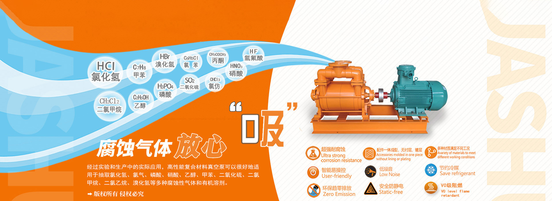 淄博華舜耐腐蝕真空泵有限公司主要生產(chǎn)各種型號(hào)和規(guī)格的水噴射泵、耐酸泵、耐酸真空泵等產(chǎn)品,是一家集科研開發(fā)、設(shè)計(jì)咨詢、生產(chǎn)、銷售、服務(wù)于一體,利用新型高性能復(fù)合材料,專業(yè)生產(chǎn)耐腐蝕液環(huán)真空泵的國(guó)家高新技術(shù)企業(yè), 坐落于“中國(guó)泵業(yè)名城”---山東省淄博市博山區(qū),公司通過了ISO9001質(zhì)量體系認(rèn)證。公司獨(dú)立研發(fā)的具有多項(xiàng)自主知識(shí)產(chǎn)權(quán)的專利產(chǎn)品-耐腐蝕系列水環(huán)式真空泵,通過了省級(jí)科技成果鑒定,處于“國(guó)際先進(jìn)水平”。 產(chǎn)品過流部件采用三大系列高性能復(fù)合材料(HS-V130、HS-V110、HS-V80)一體成型,耐腐蝕范圍廣、無襯層不脫落、節(jié)能效率高、運(yùn)行可靠、環(huán)保節(jié)水、 體積小、重量輕、使用壽命長(zhǎng)等特點(diǎn)。